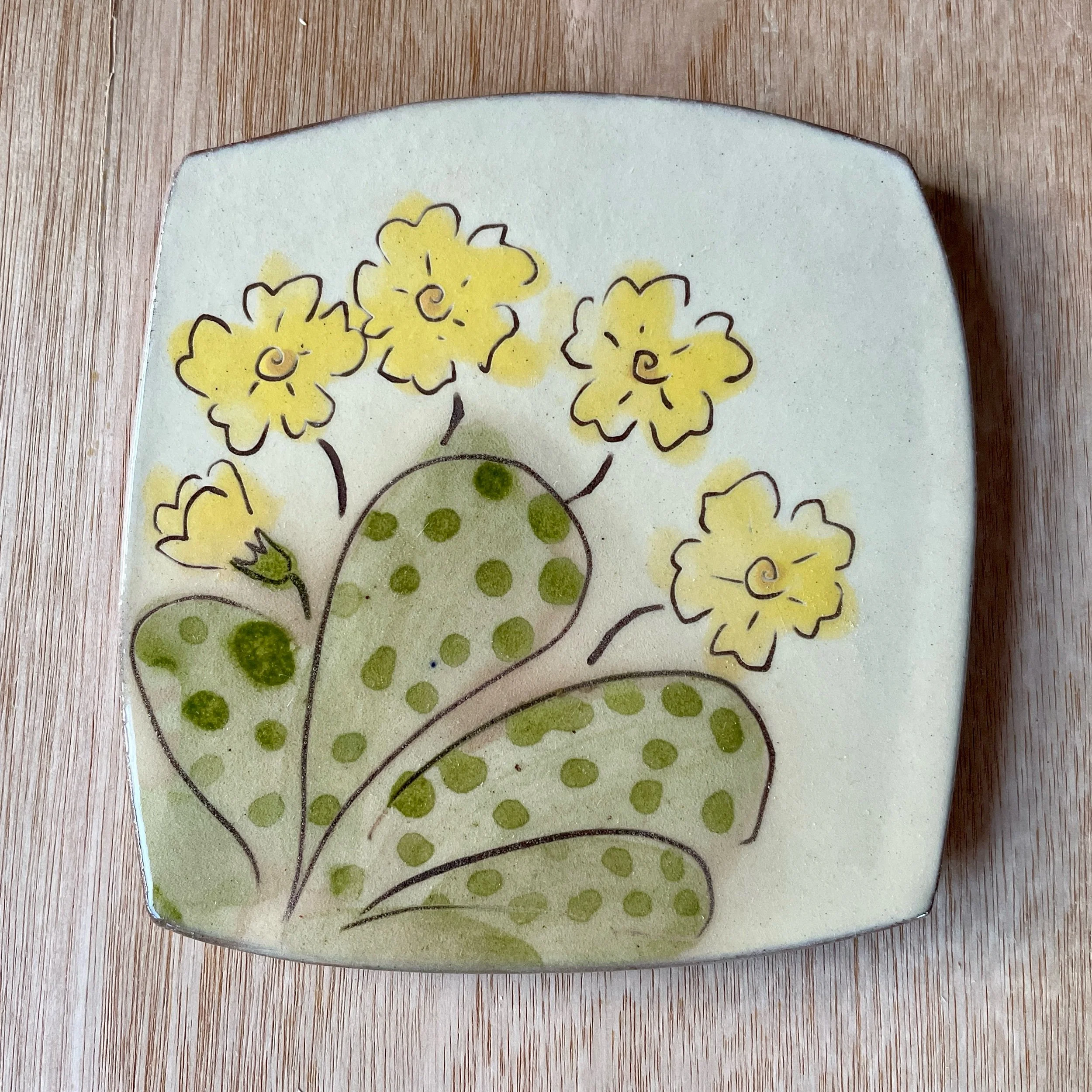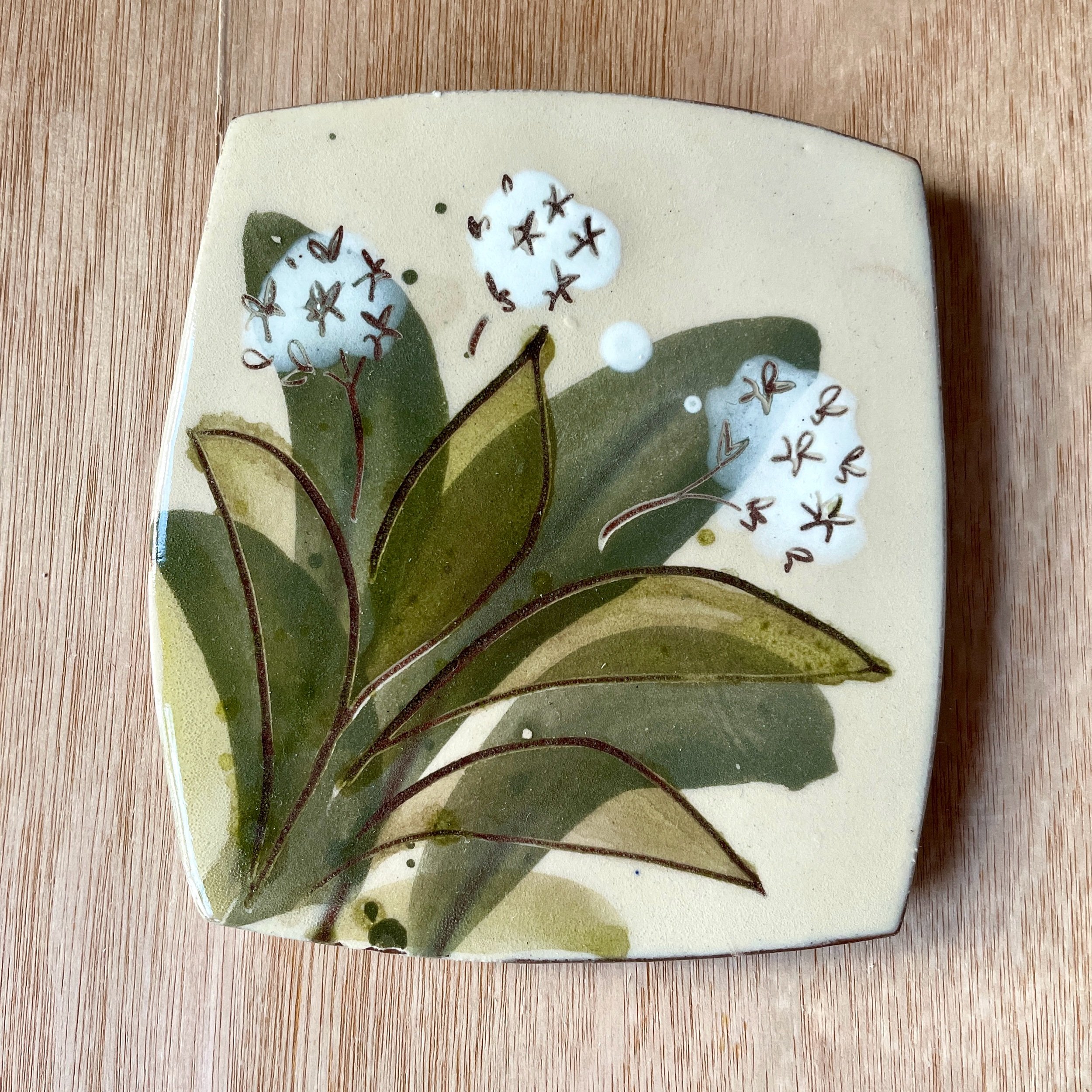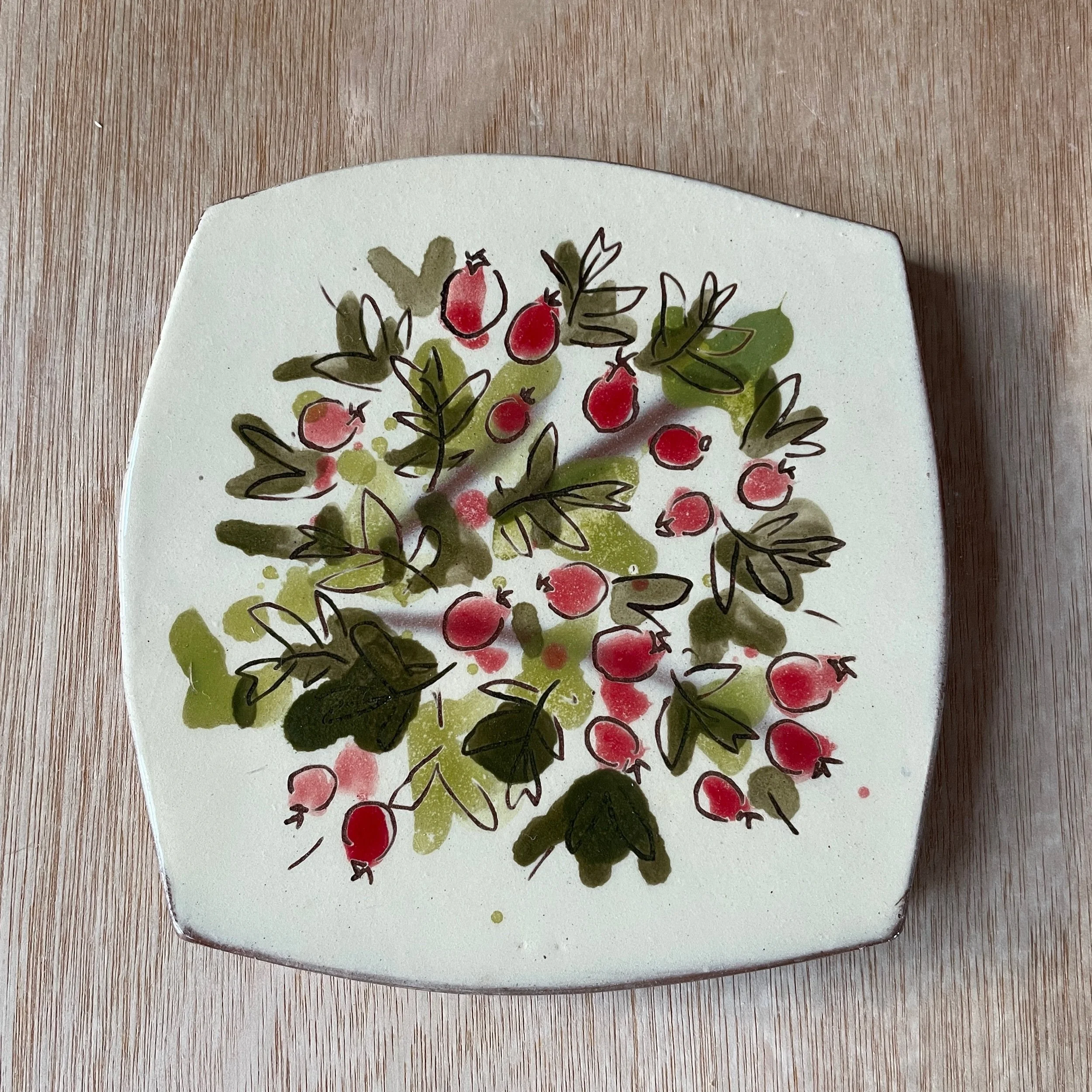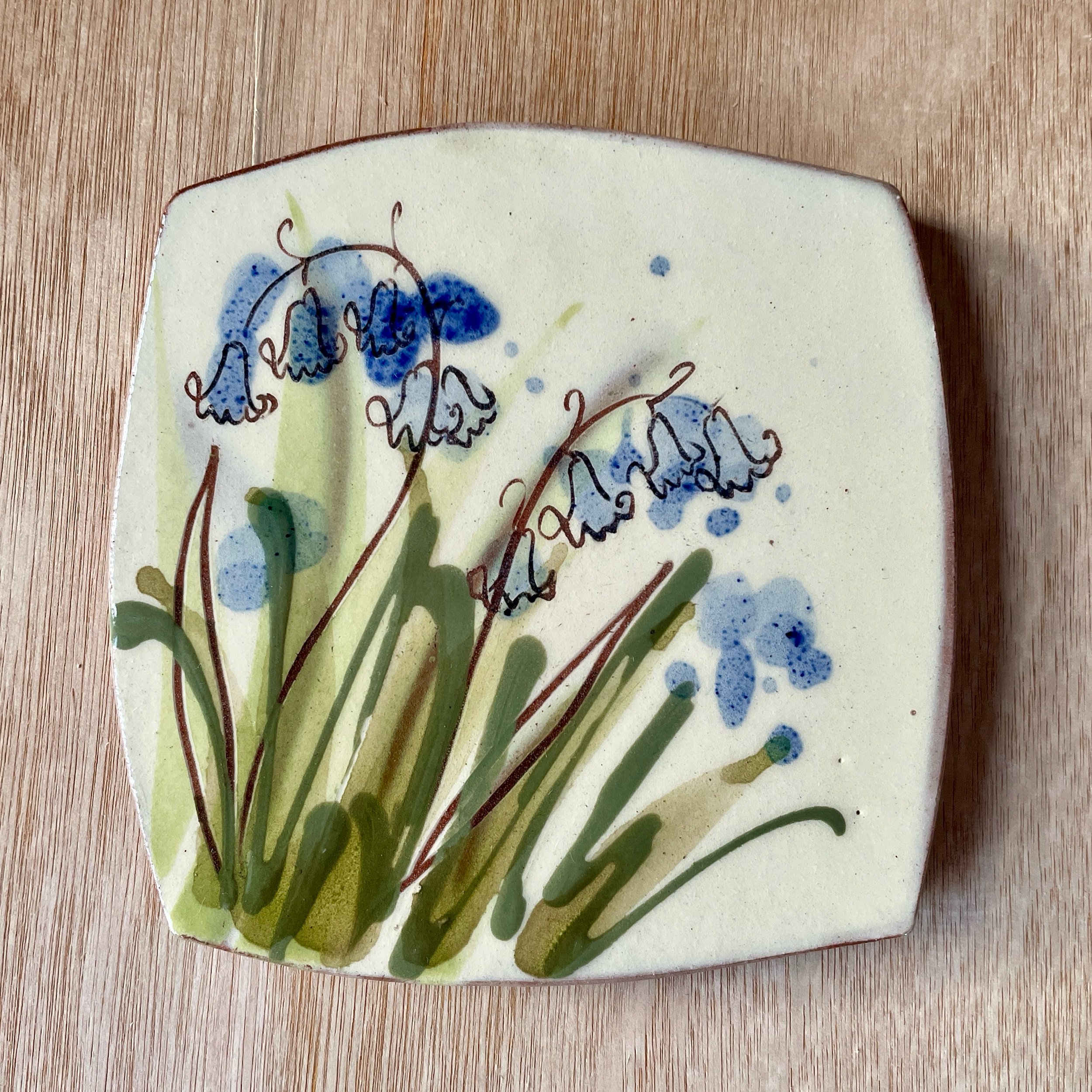 Tiles with a loose hand cut edge. All individually decorated using sgraffito and coloured slips, glazes and underglazes.