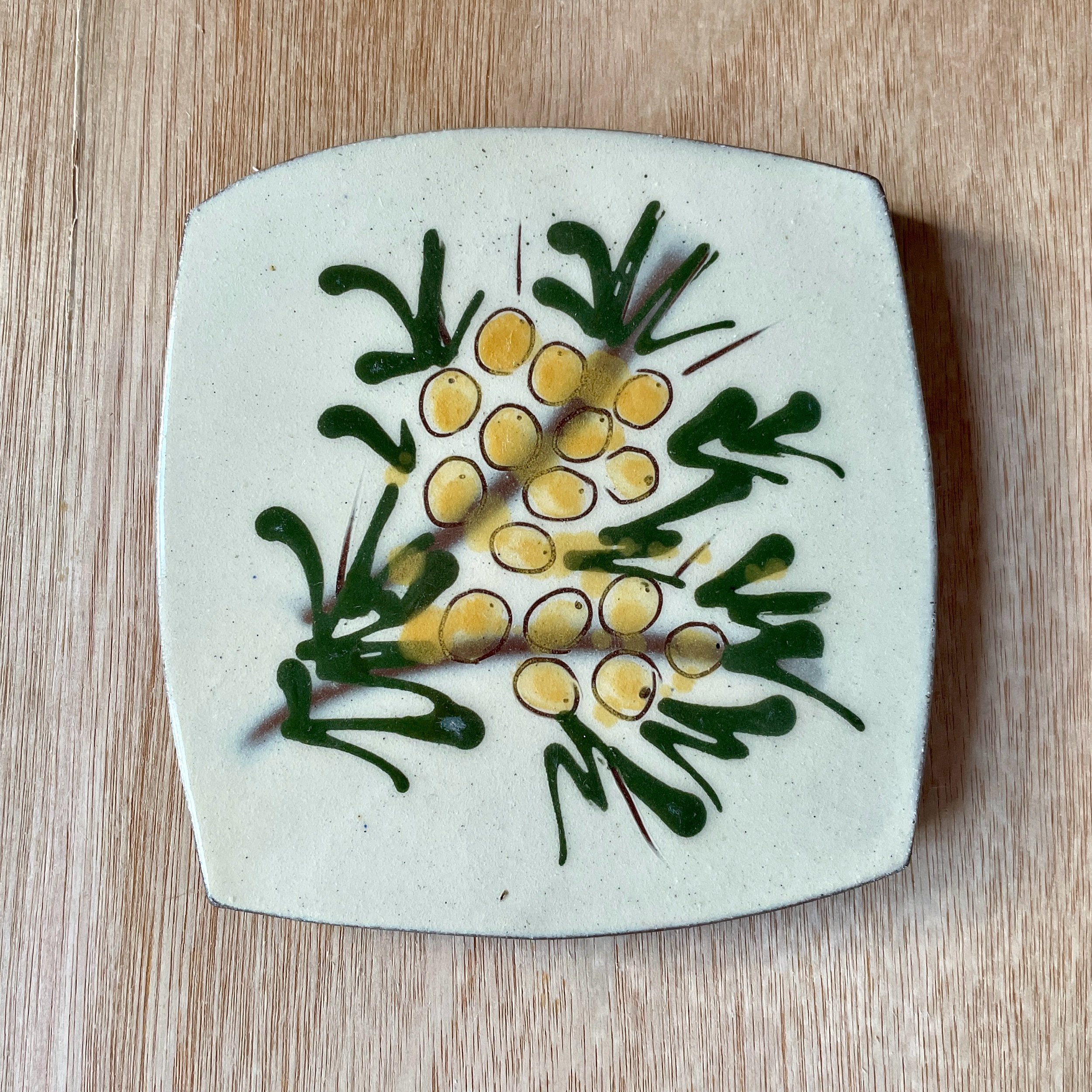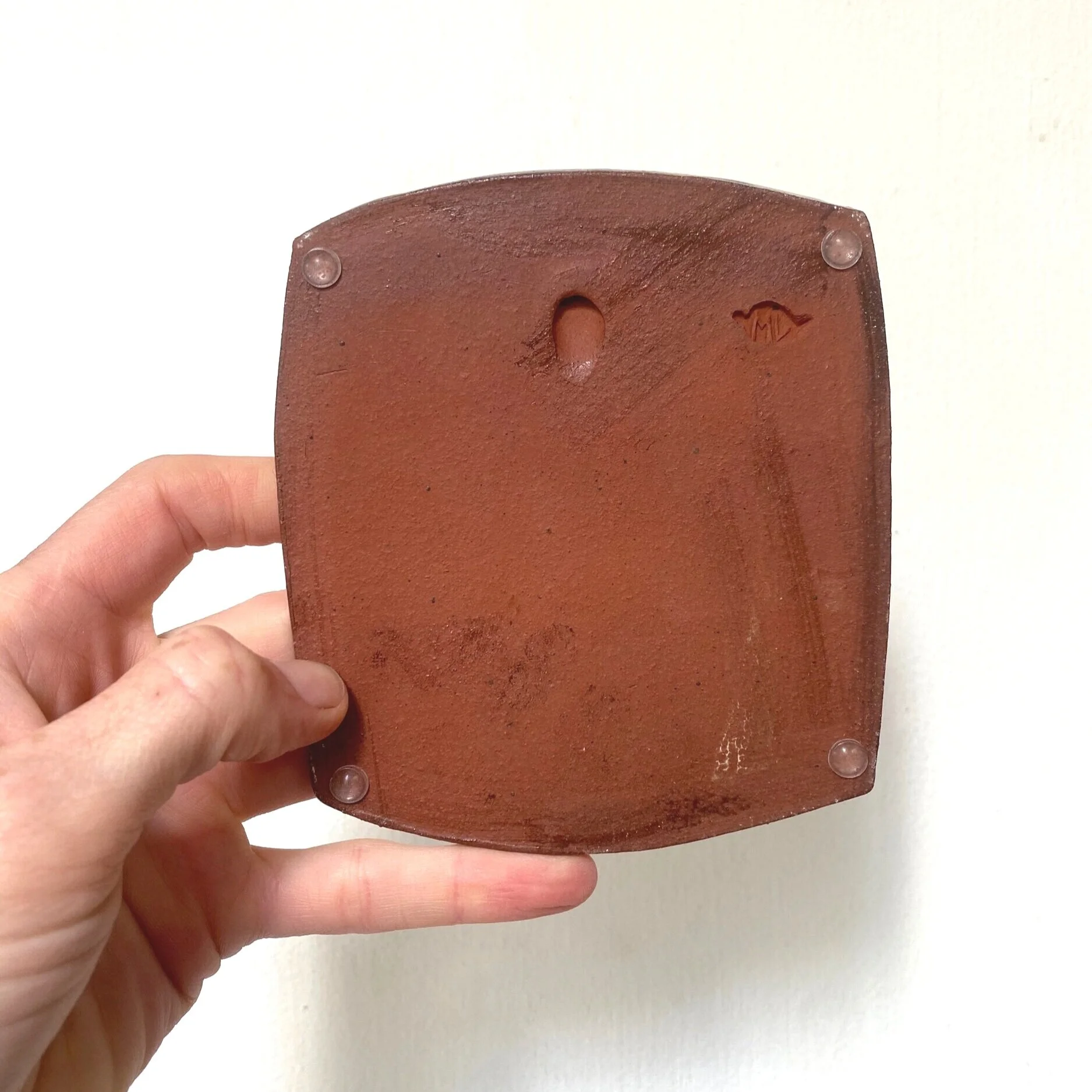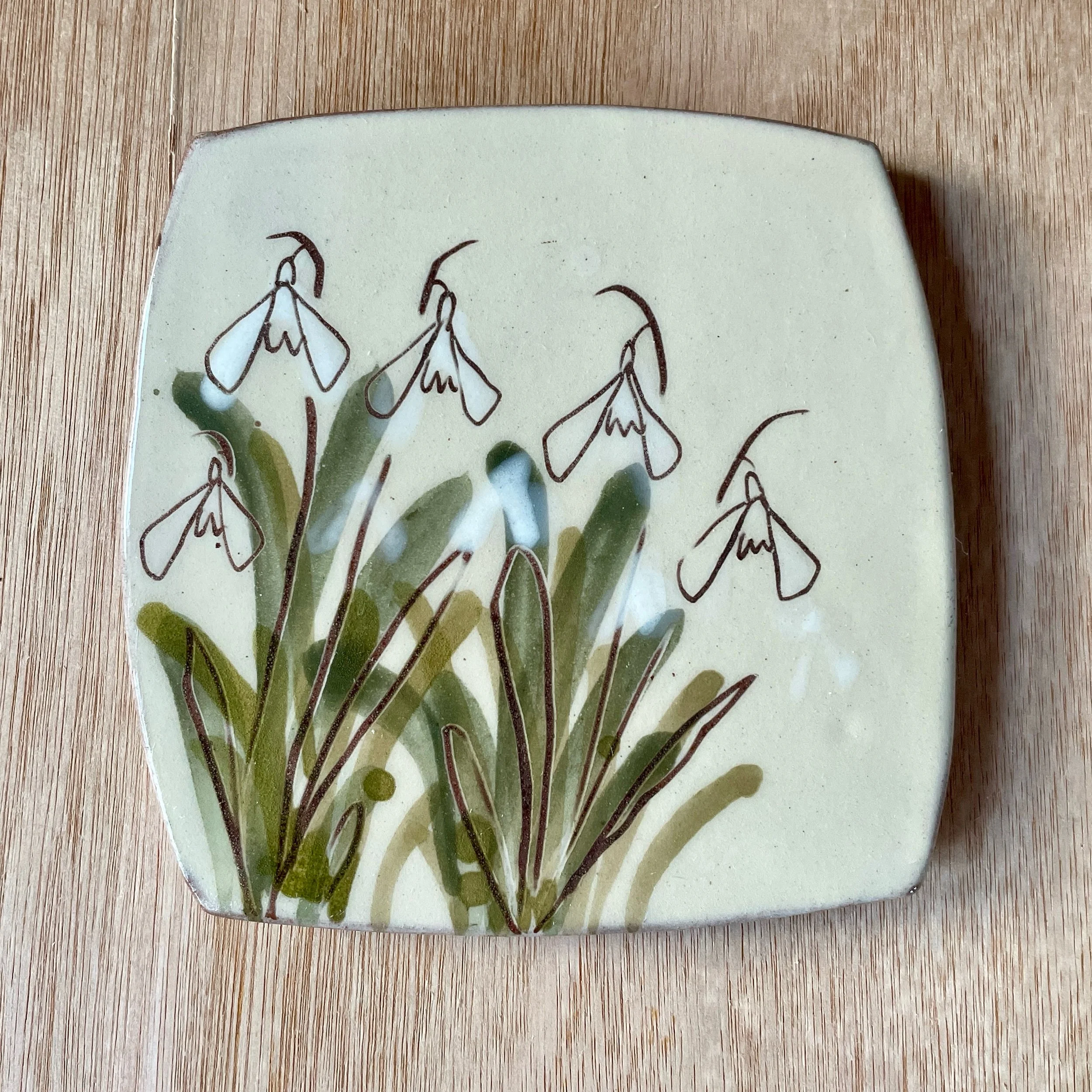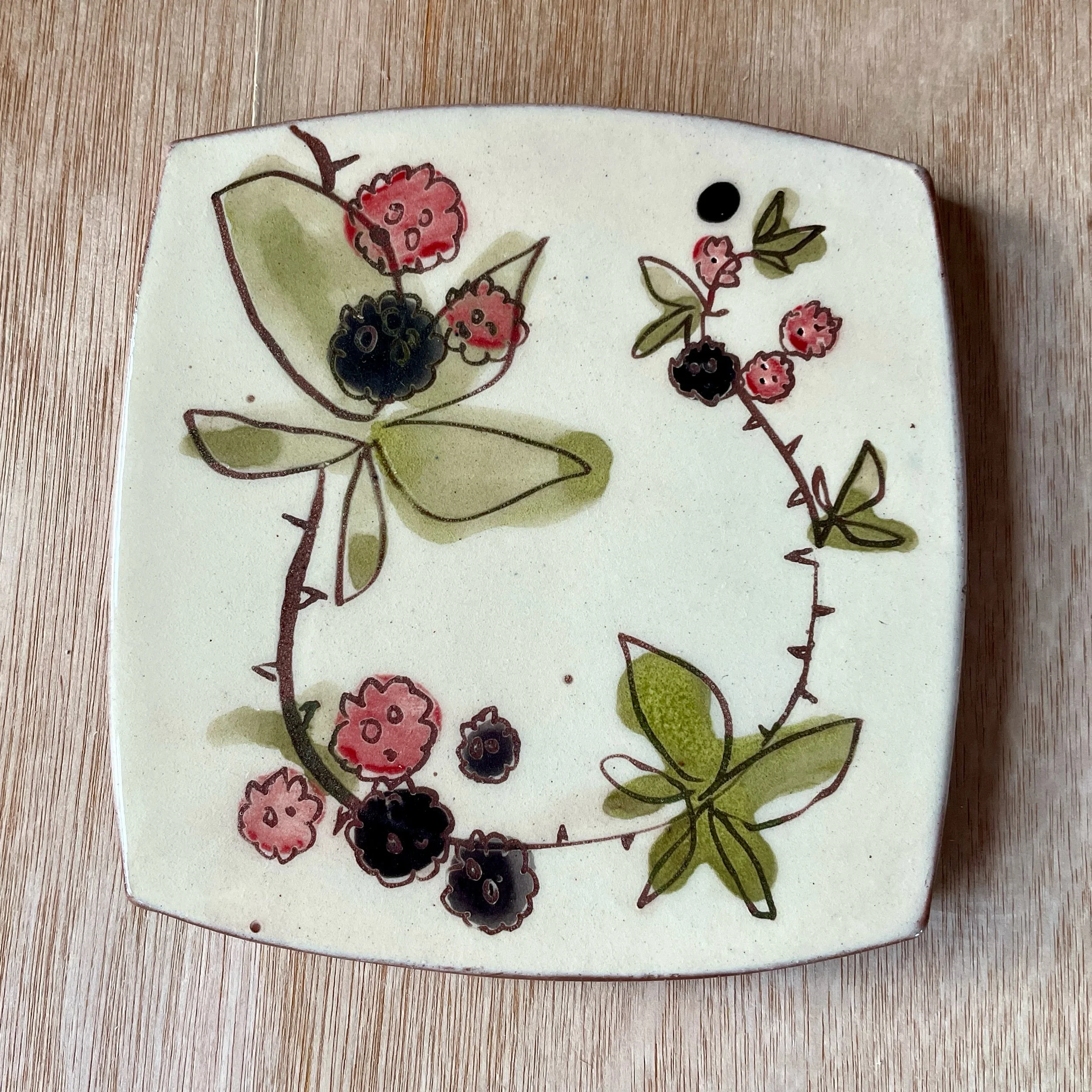 Tiles with a loose hand cut edge. All individually decorated using sgraffito and coloured slips, glazes and underglazes.