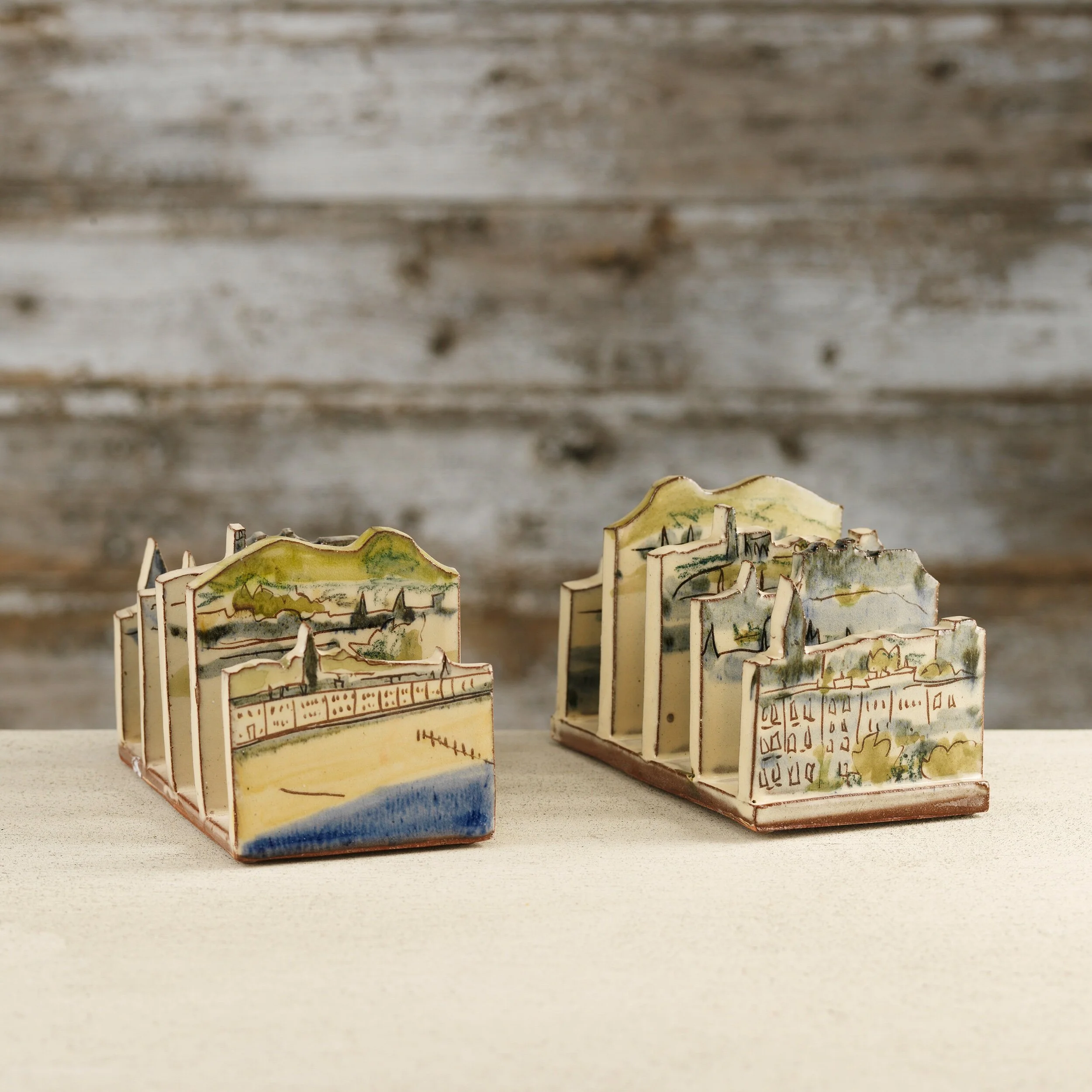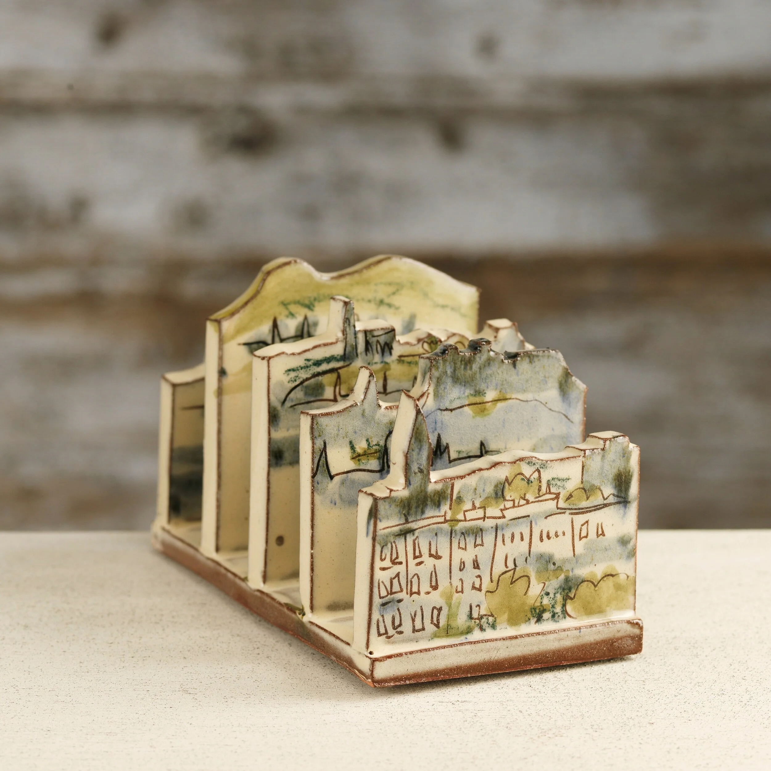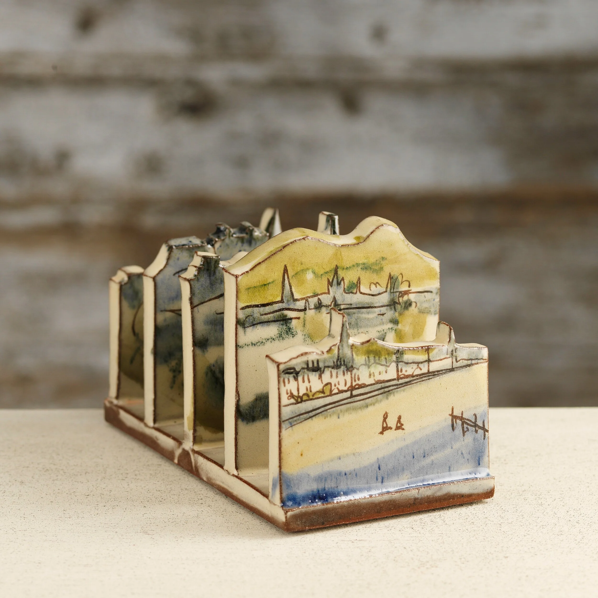 A fun toast rack with four slots wide enough for generous slices of toast.