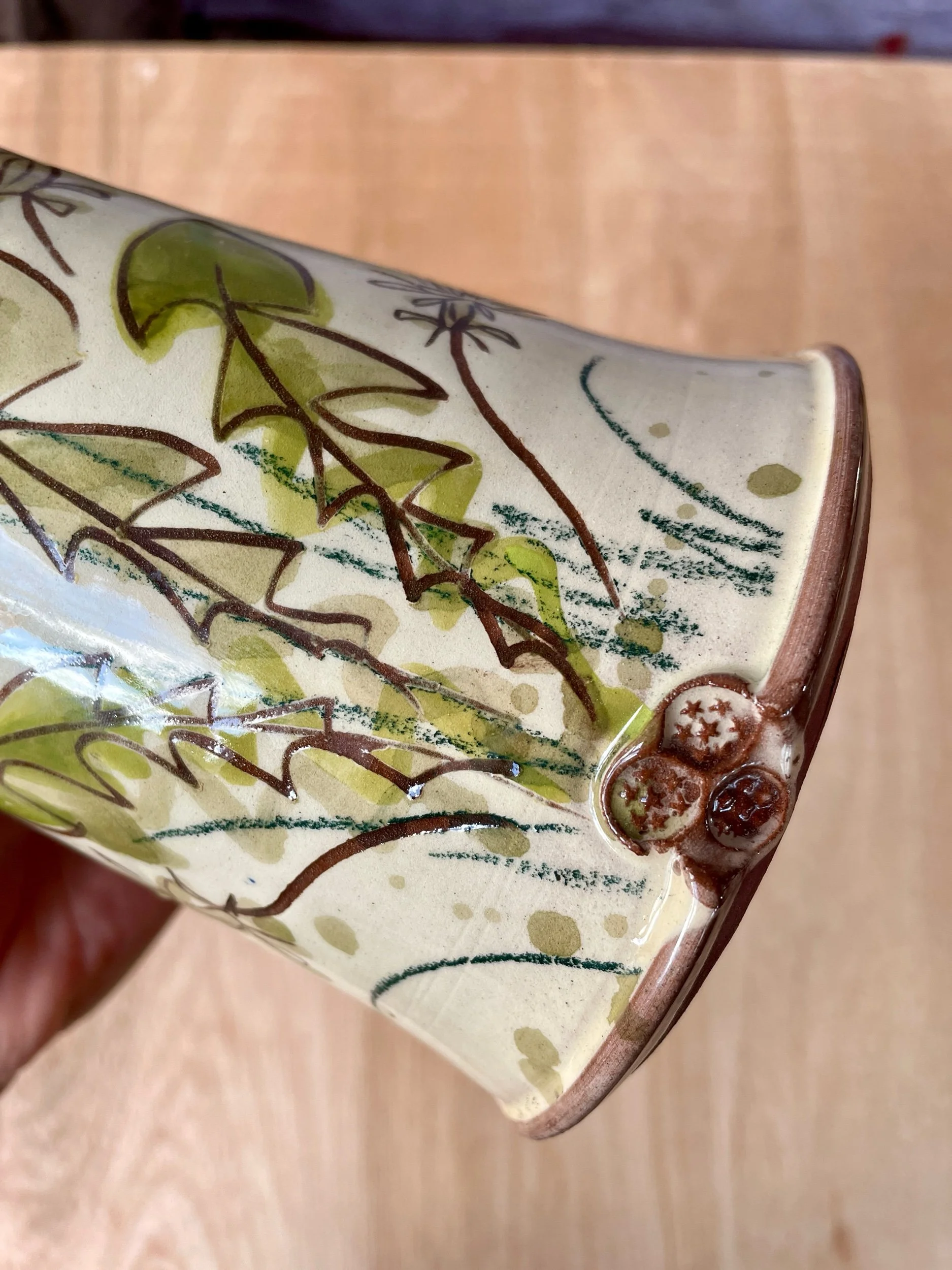 Each piece is hand thrown and hand decorated so the piece you receive will vary slightly from the one pictured.