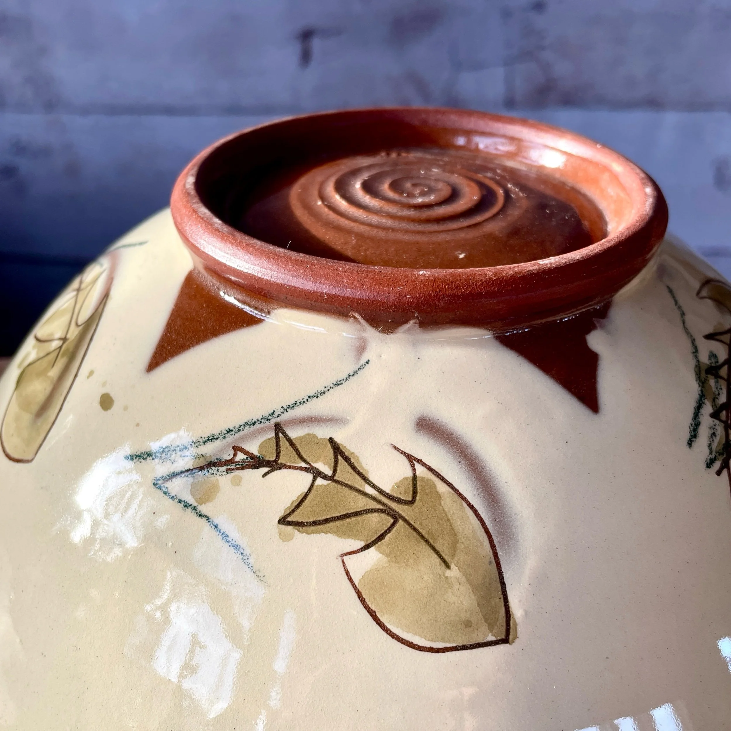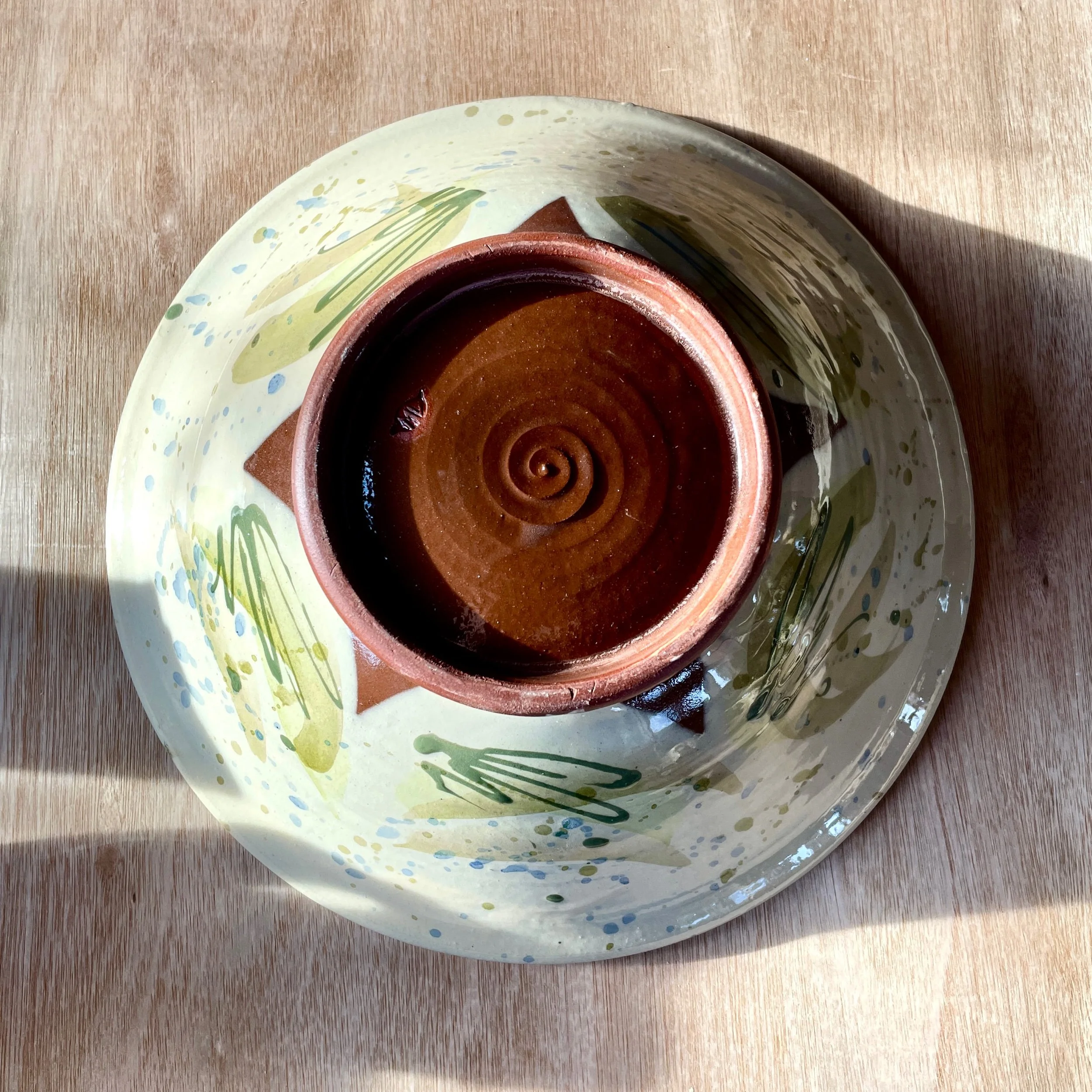 Each piece is unique – handmade and hand decorated. The bowl you will receive will differ slightly from the one photographed.