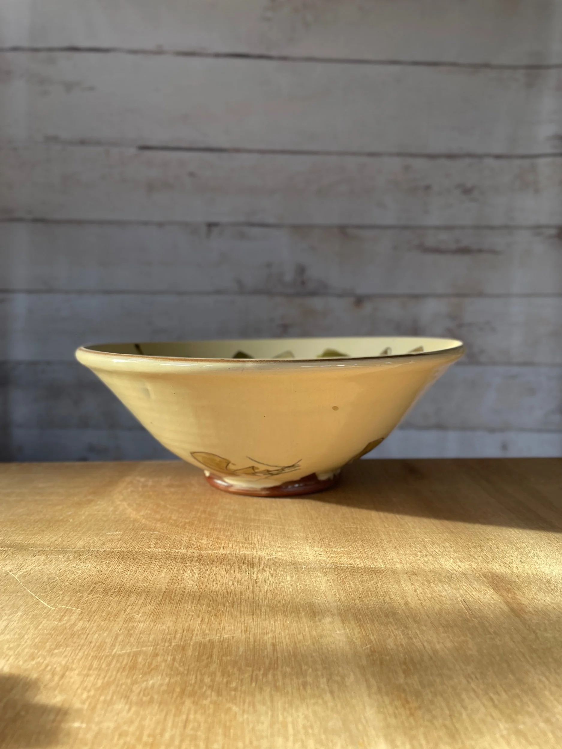 A thrown serving bowl. Perfect for fruit or salad and a beautiful table centre piece.