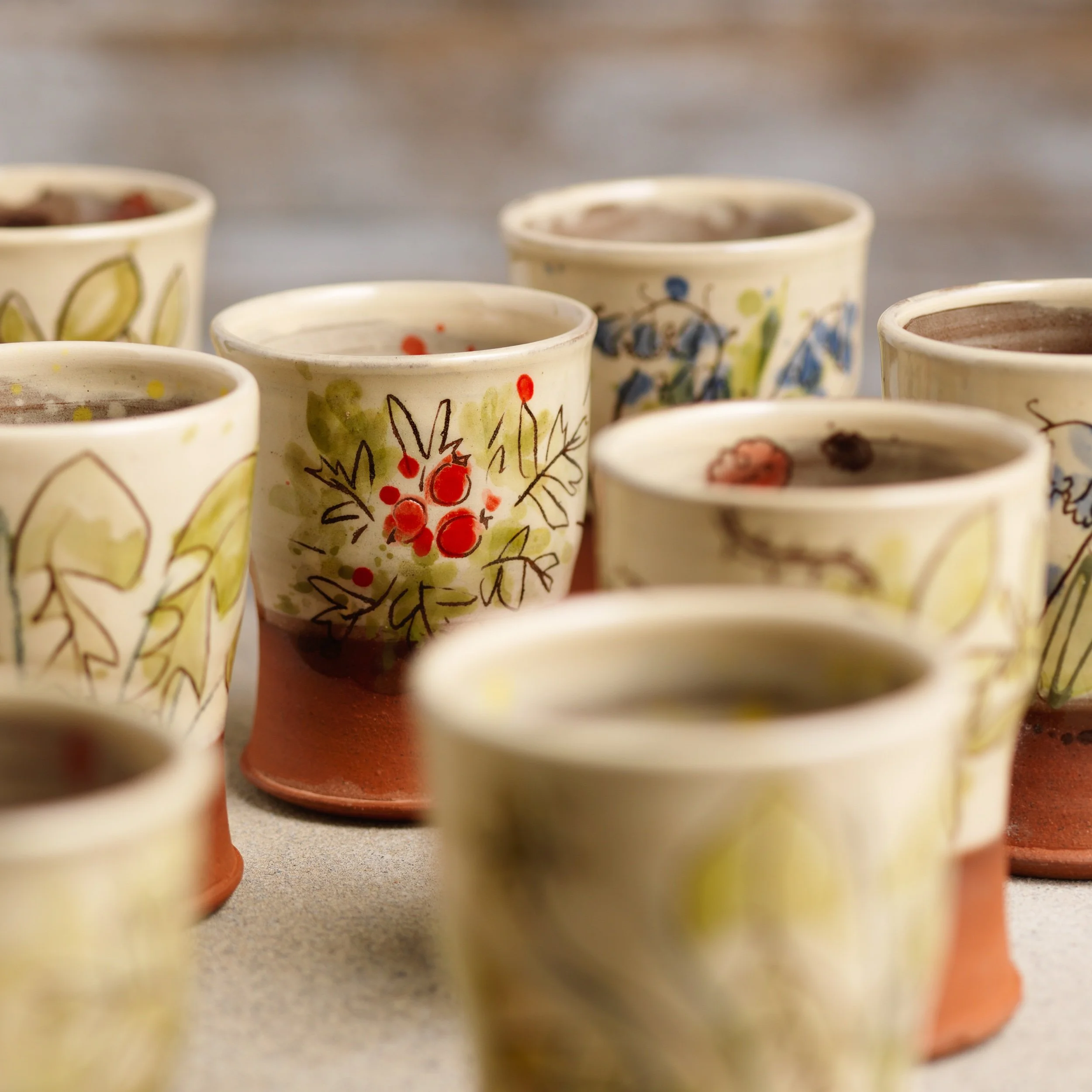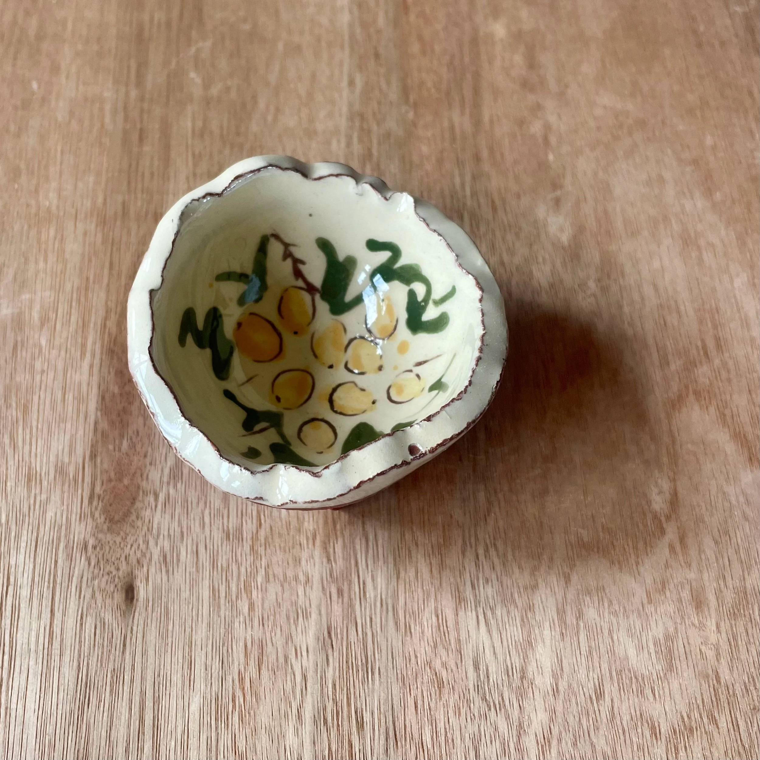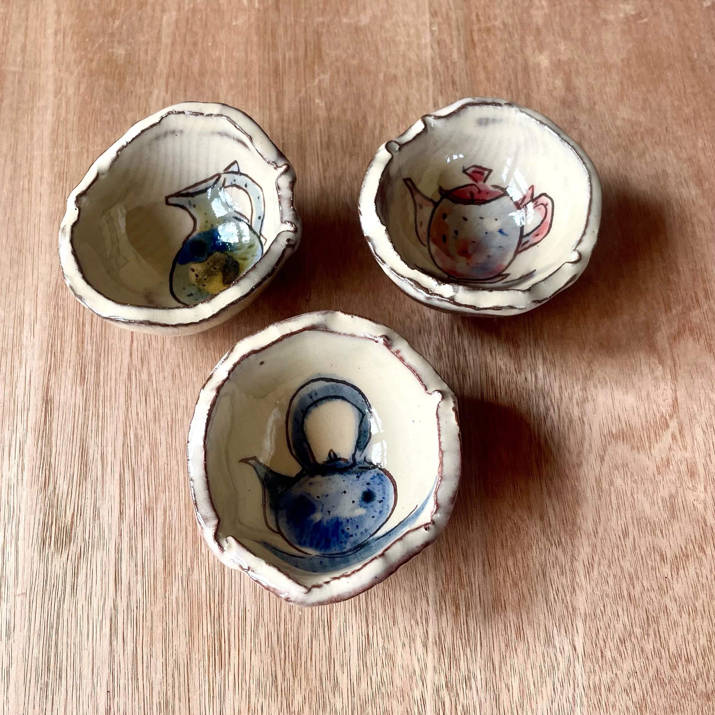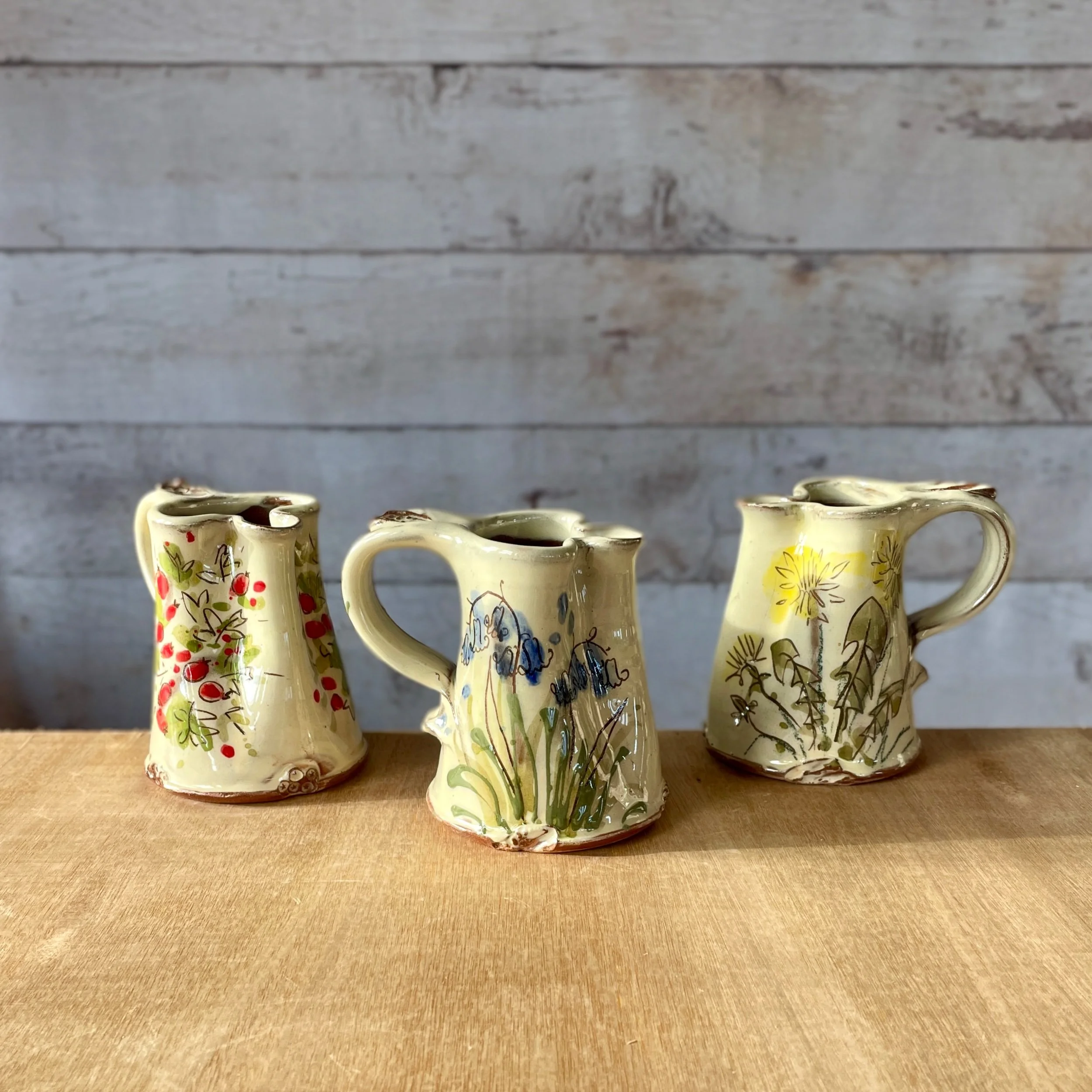Each piece is hand thrown and individually decorated so the one you receive will very slightly from those in the pictures.