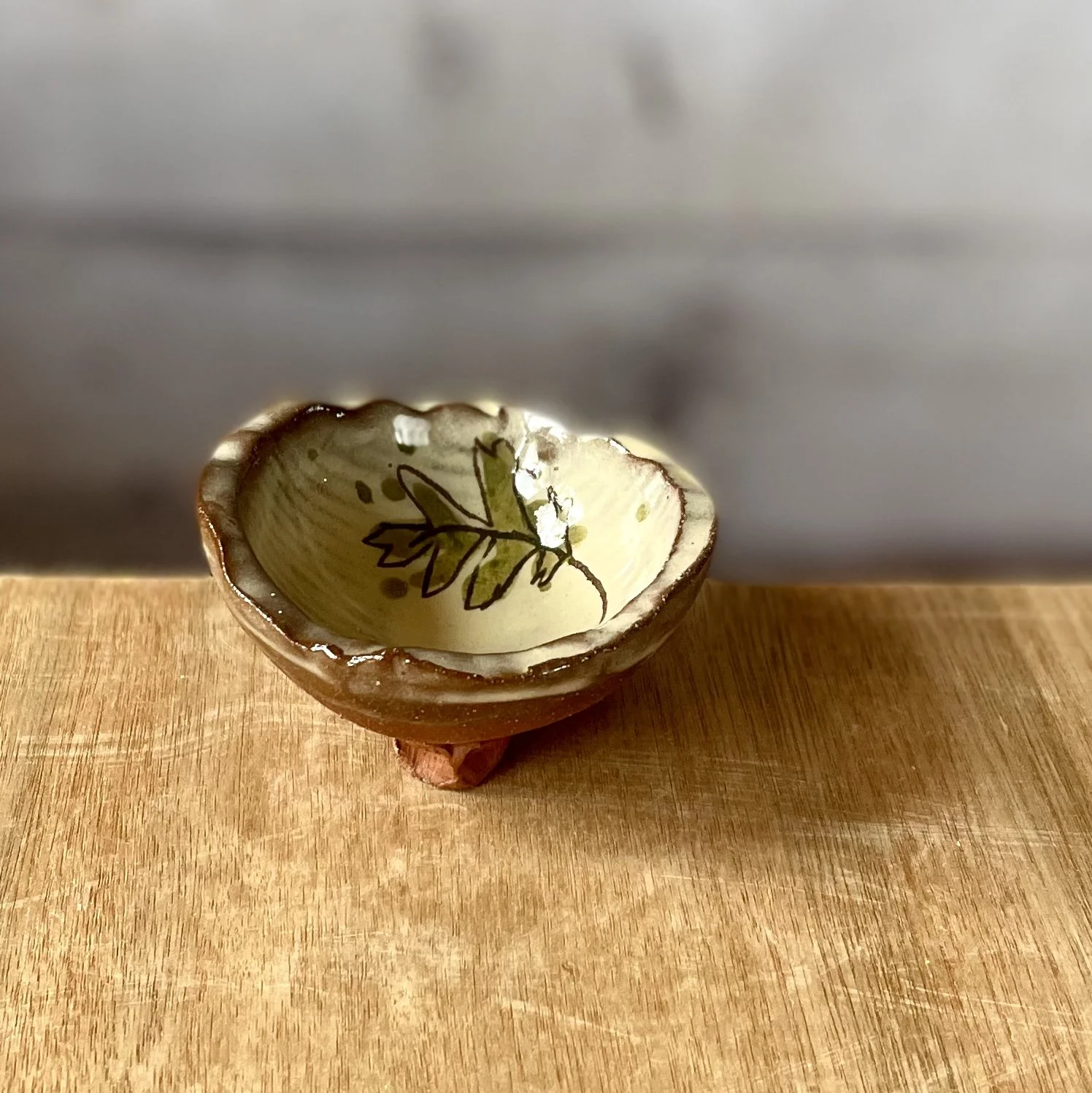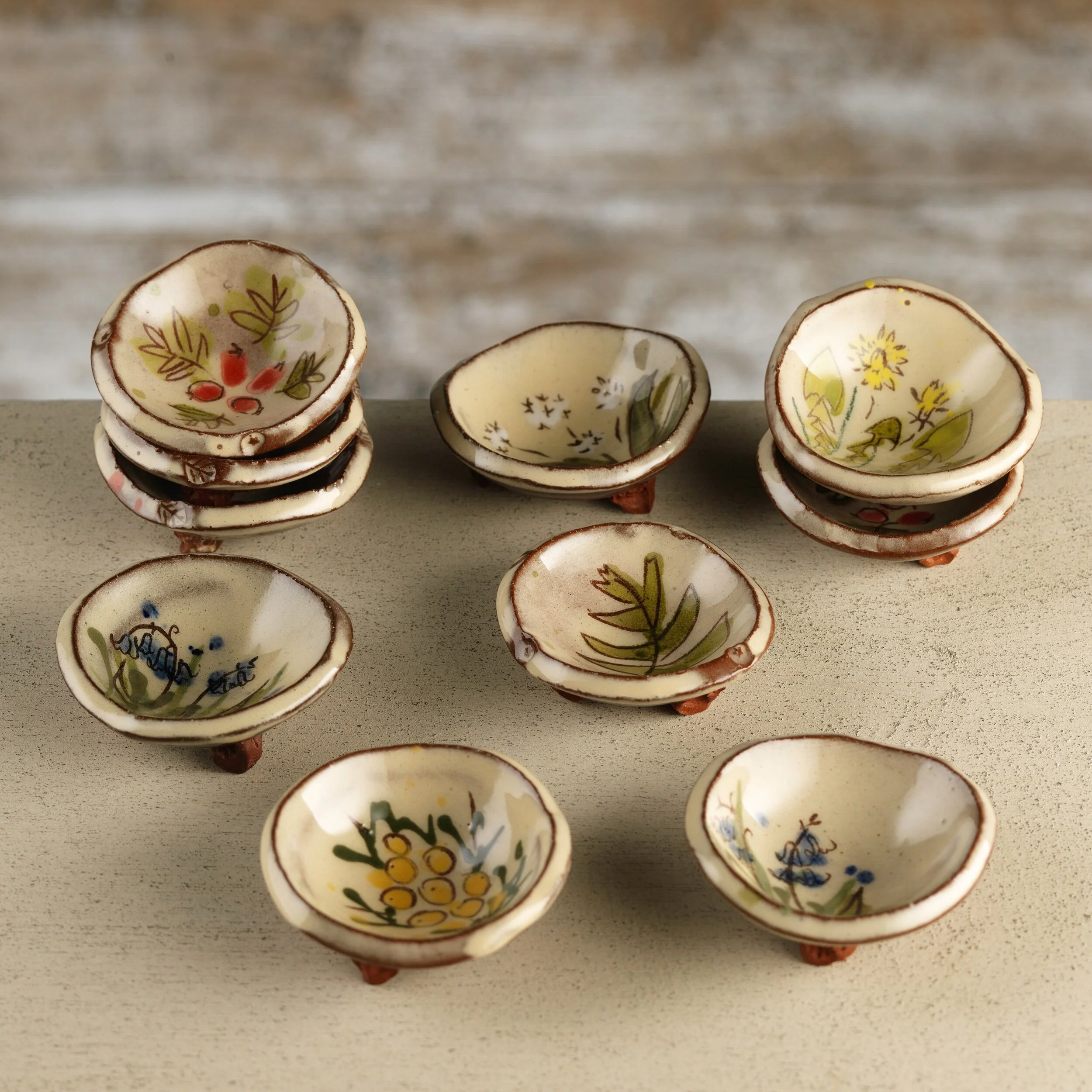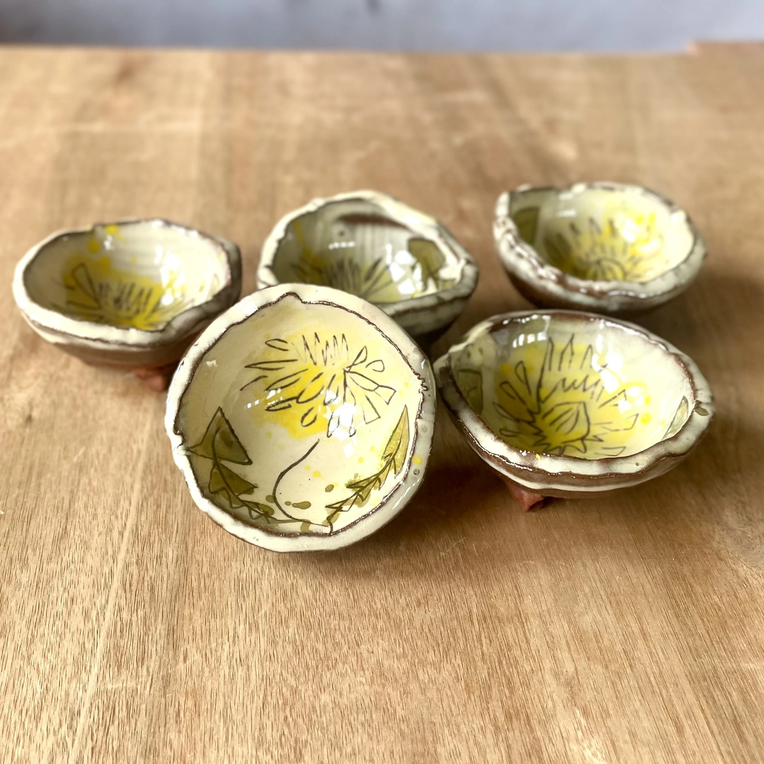 Each piece is hand thrown and individually decorated so the one you receive will very slightly from those in the pictures.