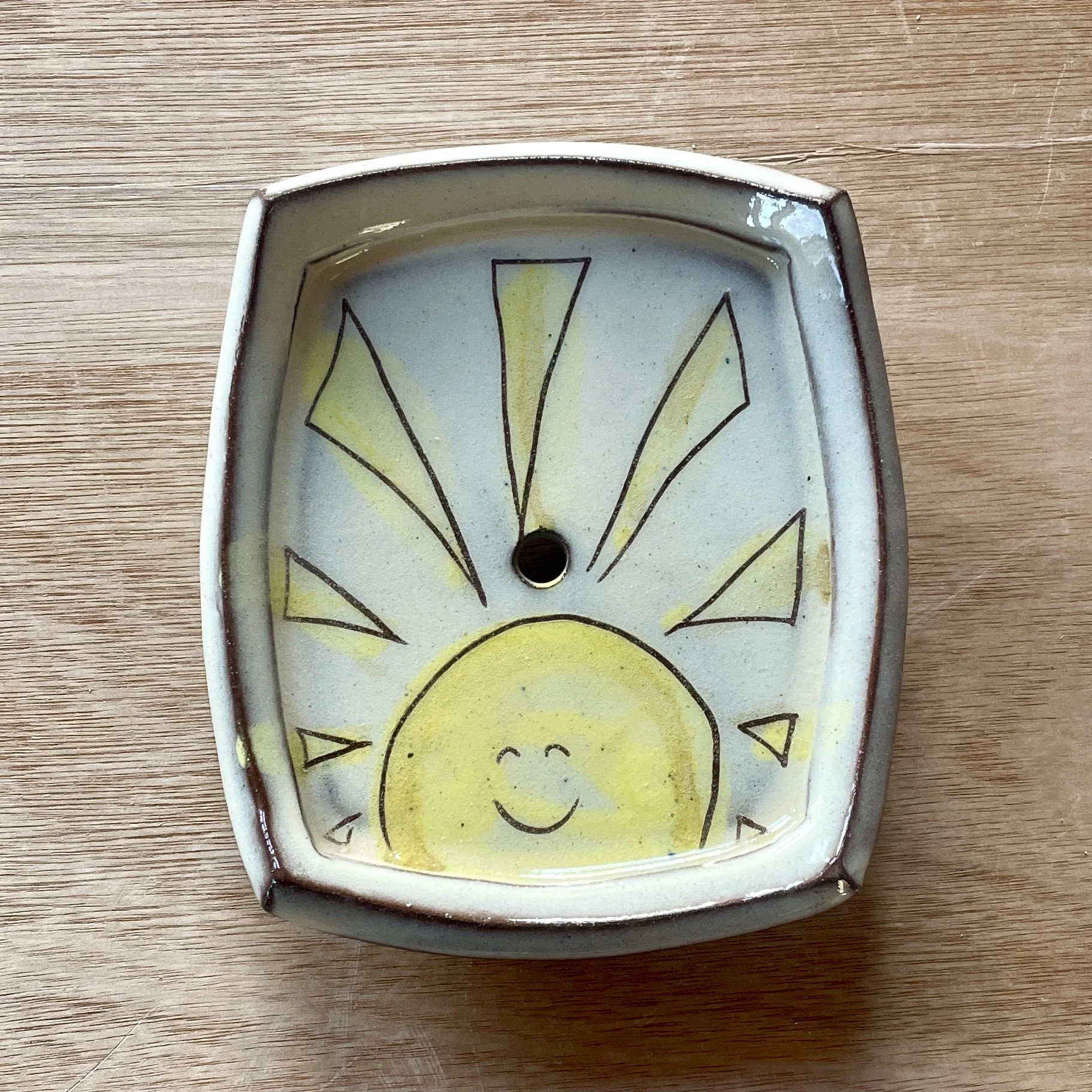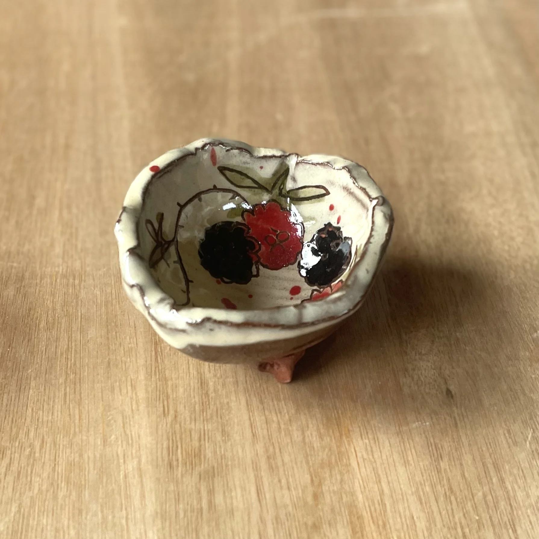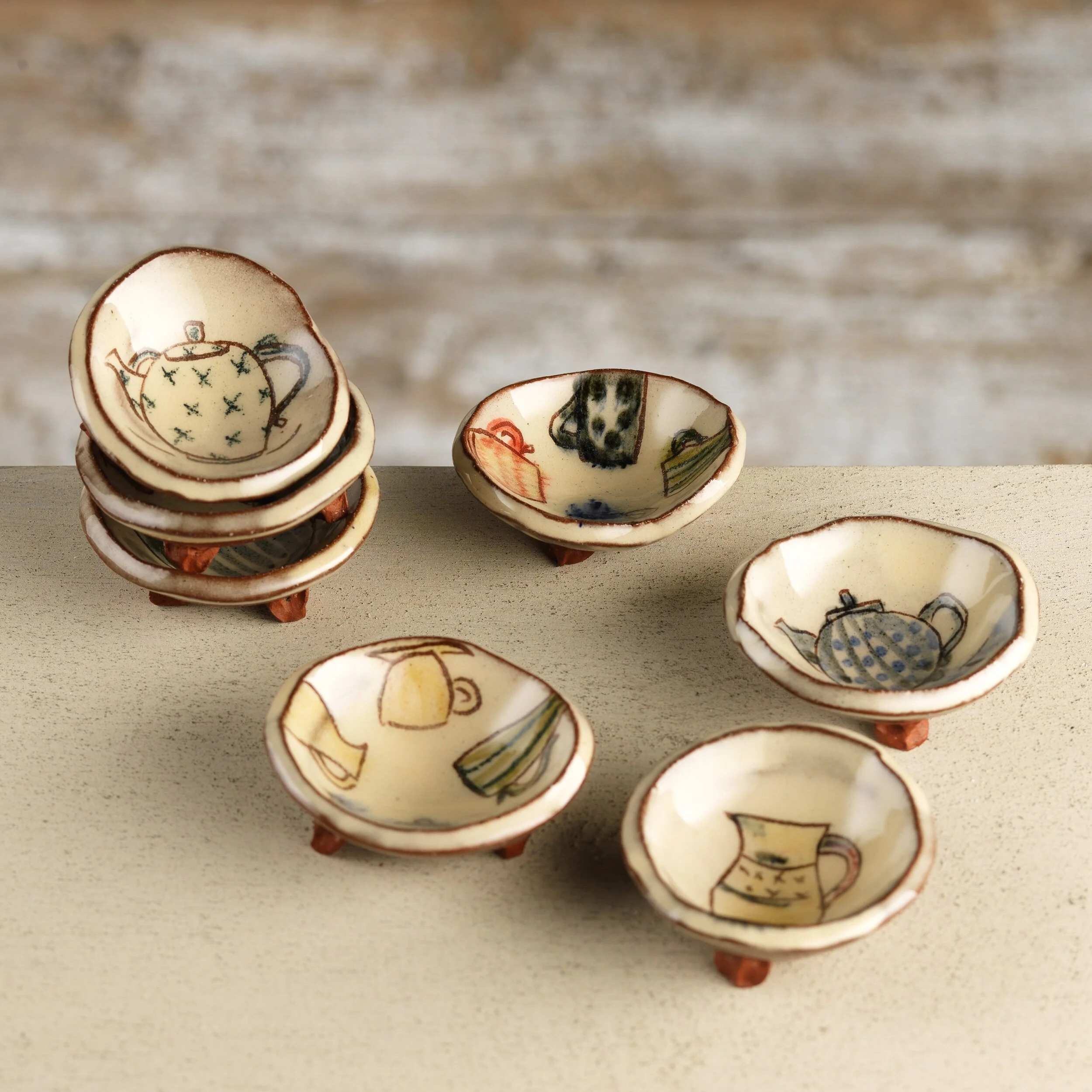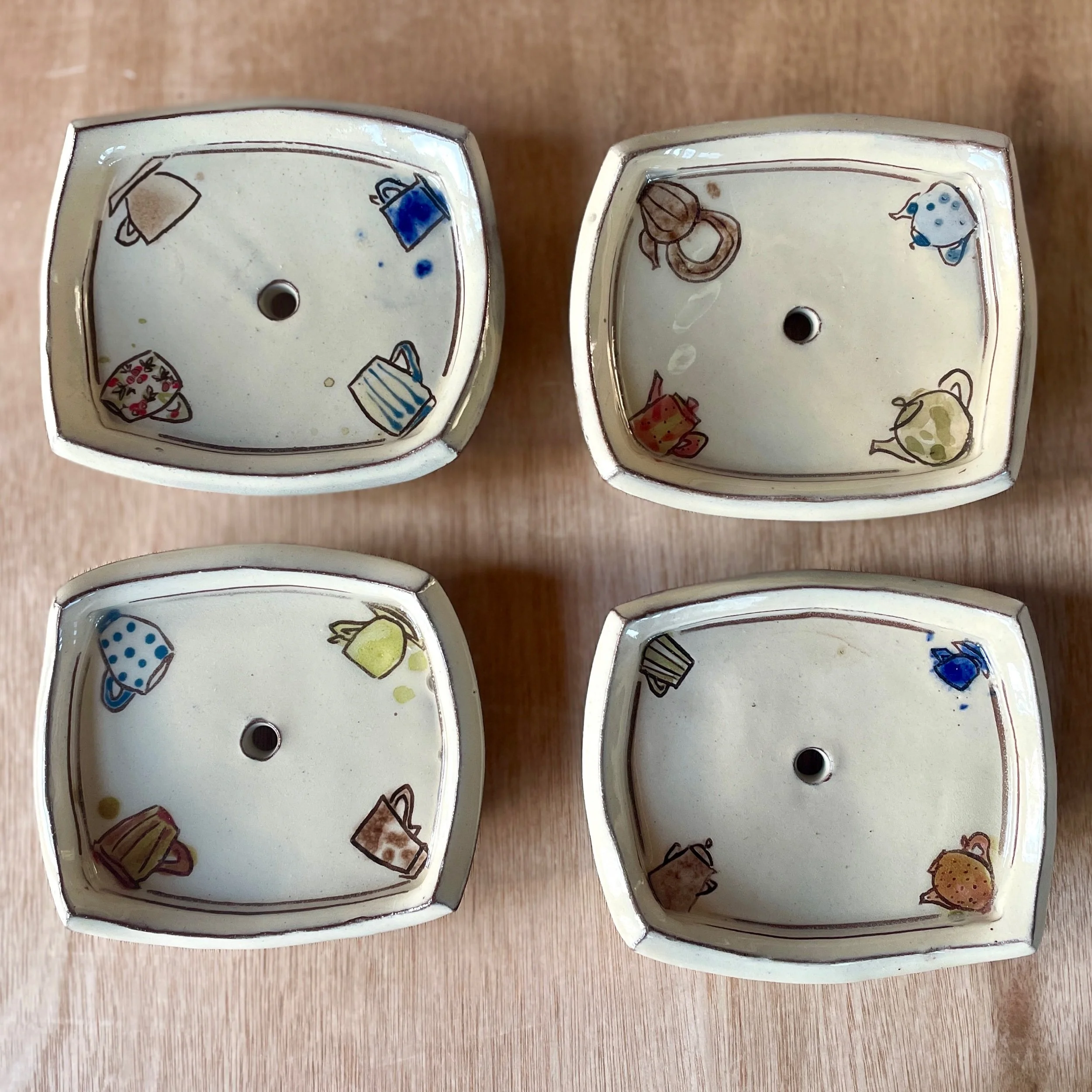 Each piece is hand thrown and individually decorated so the one you receive will very slightly from those in the pictures.